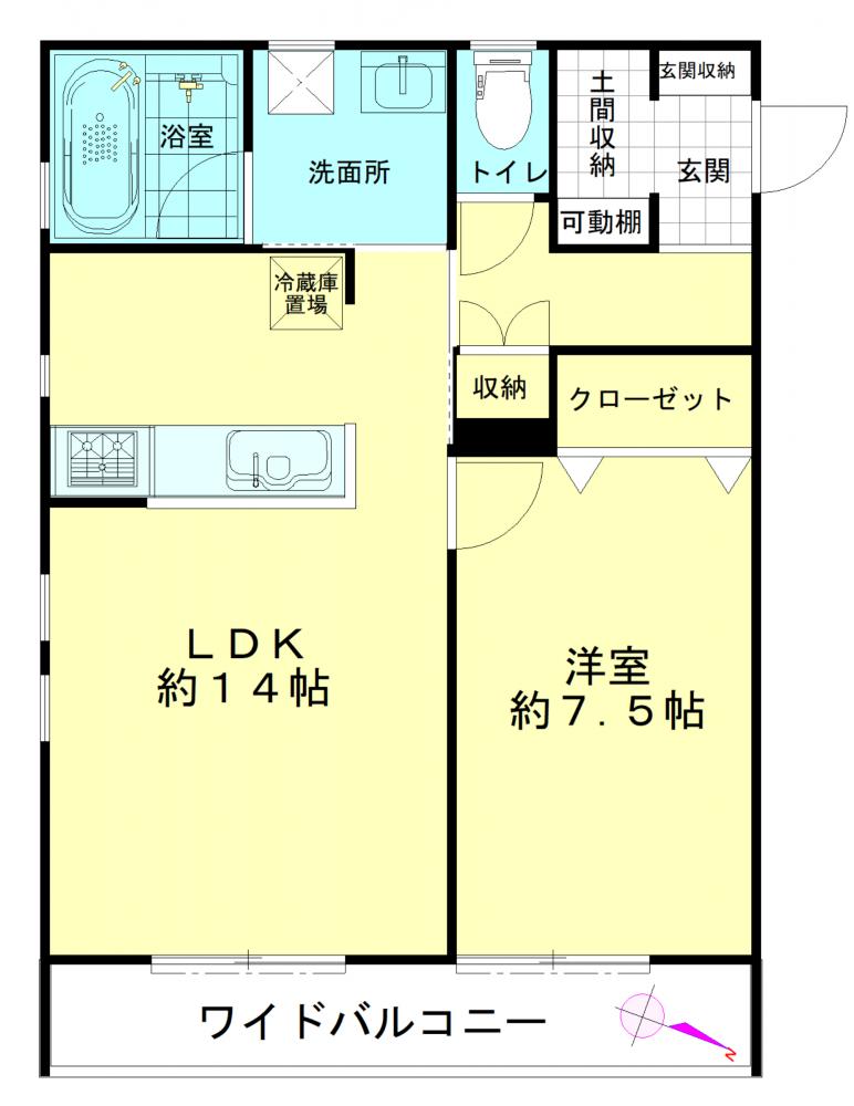 LDKは広々14帖!