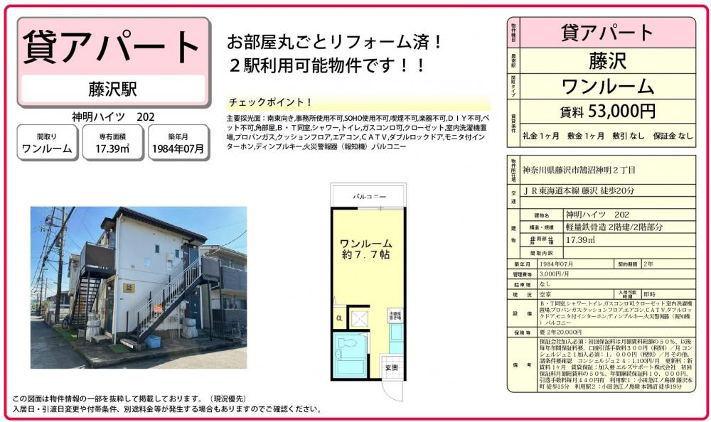 藤沢駅徒歩圏!お部屋フルリフォーム済!室内洗濯機置場!神明ハイツ202号室! | 藤沢・湘南の不動産は株式会社湘南さくらエステート